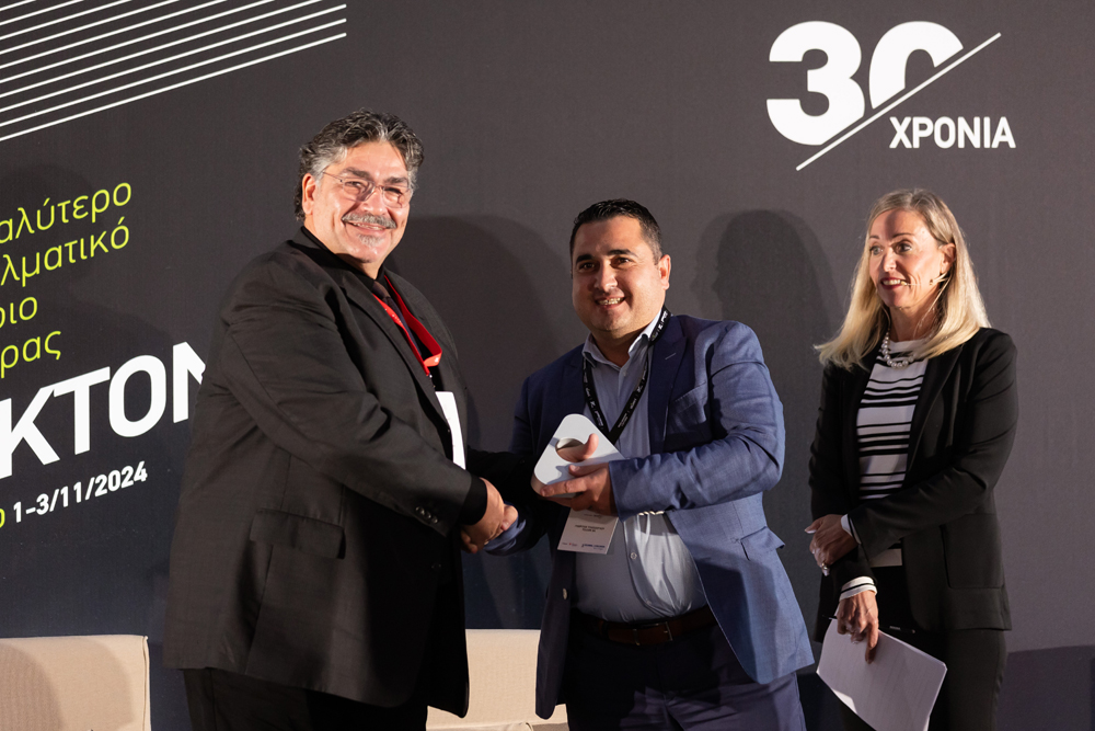 Ο Δ/νων Σύμβουλος της εταιρίας κ. Γιώργος Τιλσίσογλου, στη πρόσφατη βράβευσή του στο 16ο Συνέδριο “Αλουμίνιο & Αρχιτεκτονική” για την πολύχρονη προσφορά του στον κλάδο του αλουμινίου